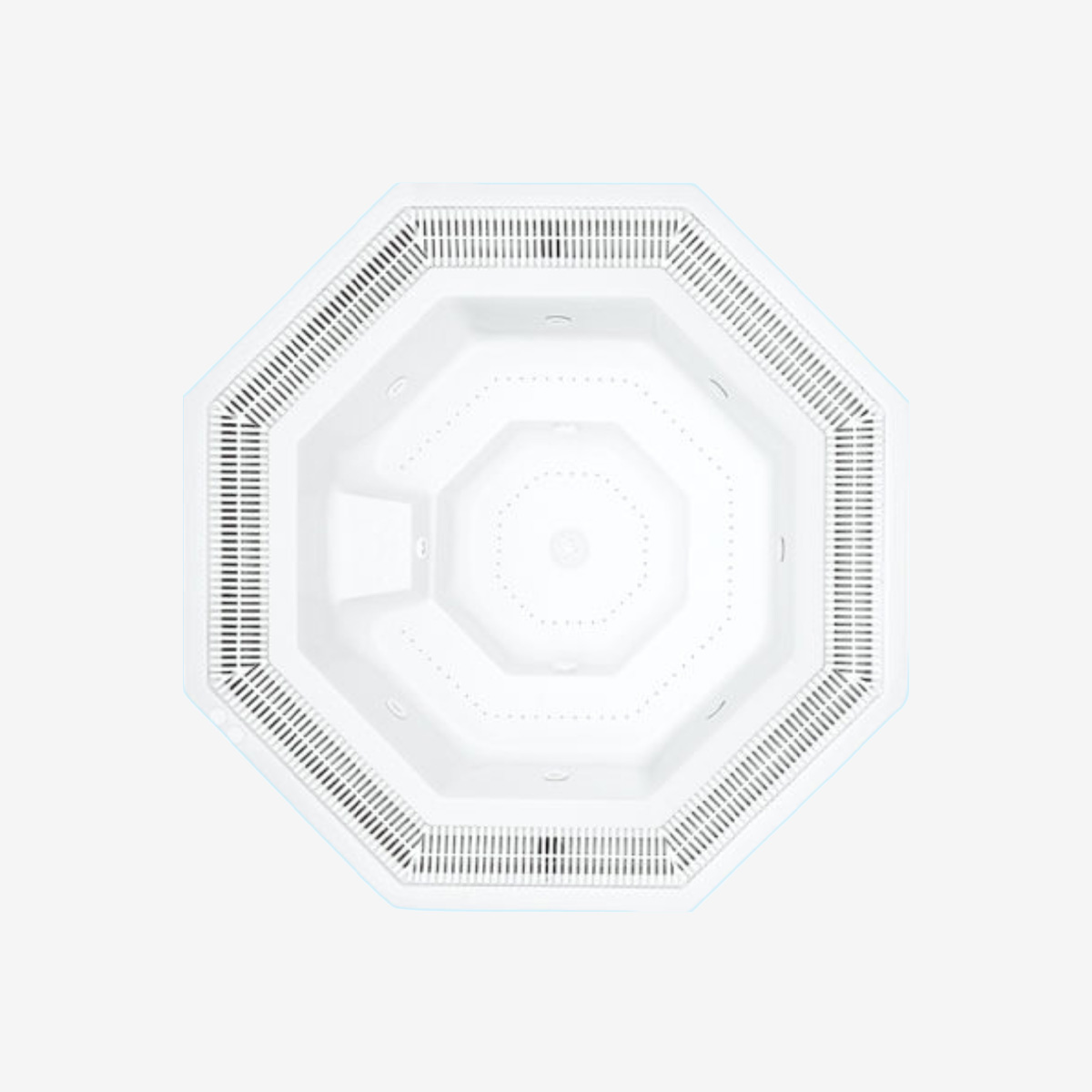The Natalie with Gutter is an octagonal, fully commercial spa bath designed for high-use spaces. Measuring 2.53 x 2.53 x 0.78m, there’s seating capacity for five adults, and the premium-quality acrylic shell provides strength and long-term durability.