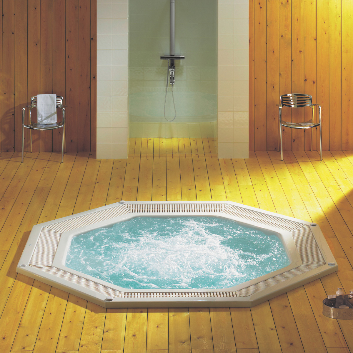 This model is well-suited to private bathing rooms, fitness clubs, hotels and spa and wellness centres. The integrated entry and exit improves accessibility and helps create a safer, more enjoyable bathing experience for guests.